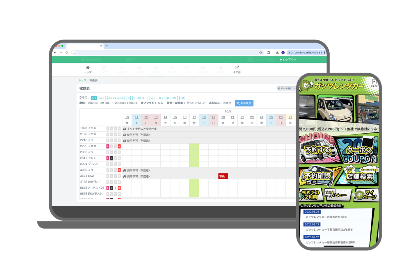 現場からも“わかりやすくて使いやすい“とご意見をいただいております。 特に「稼働表」については「どのお客様をどの車につけるか」をドラッグ&ドロップの操作ができるため、1台あたりの車両稼働率を最大限上げることができ、結果としてレンタカー売上も最大限上げることができました。