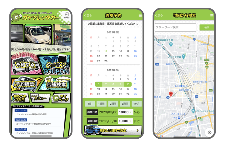 「ガッツレンタカー」は6時間や12時間といった時間貸ではなく、1週間や1カ月といった中長期で利用するお客様をターゲットとしたレンタカー会社になります。そのため、一般的に出回っているレンタカーシステムでは不足している点が多く、オリジナルで作成する必要があったため、中長期向けレンタカーシステムの開発についてご相談させていただきました。