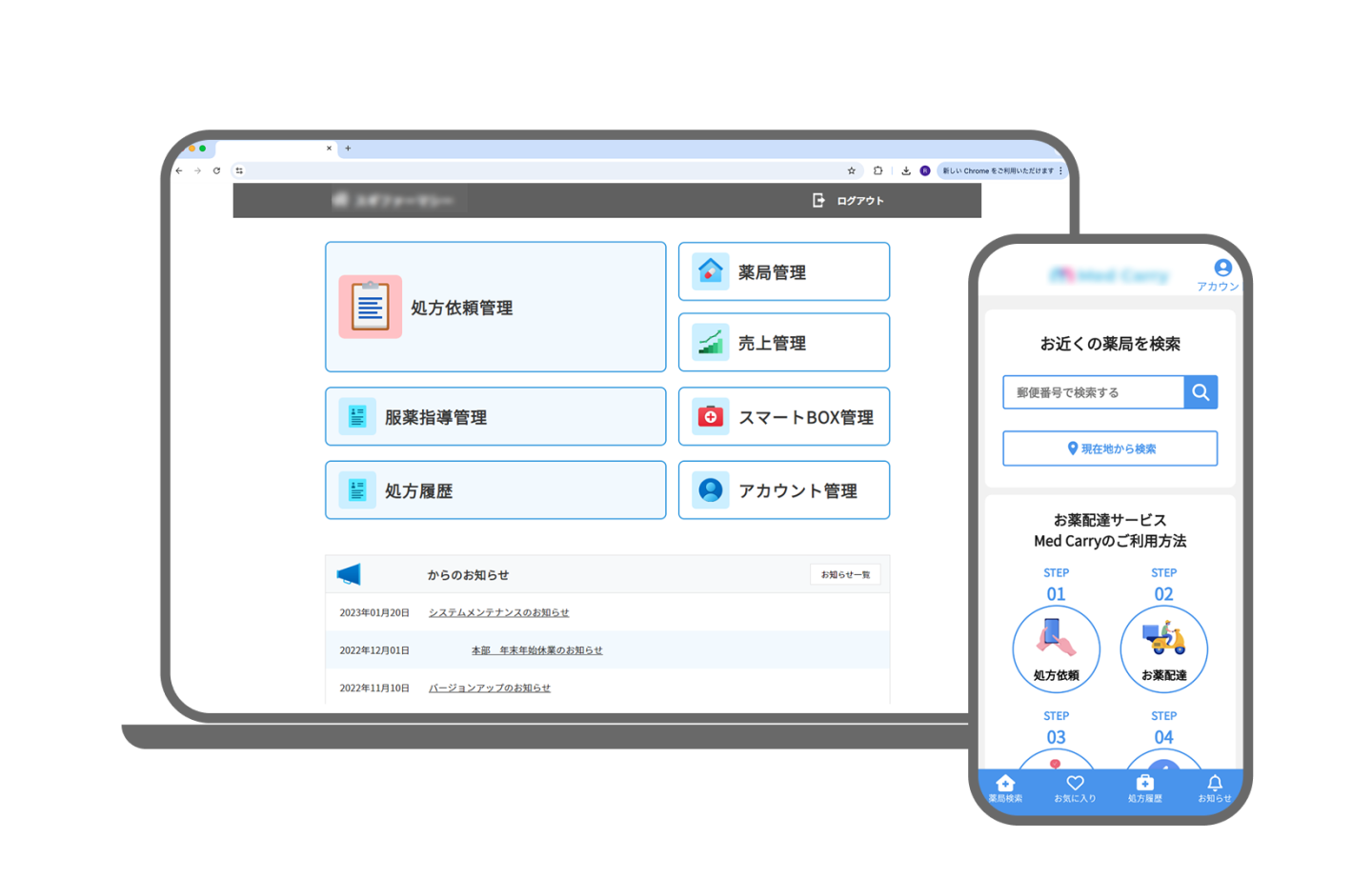 病院にかかり処方箋を受け取りたいユーザーと、薬局と、配達者をマッチングする 配達マッチングプラットフォームの事業運営全般を担うシステムを担当しました。