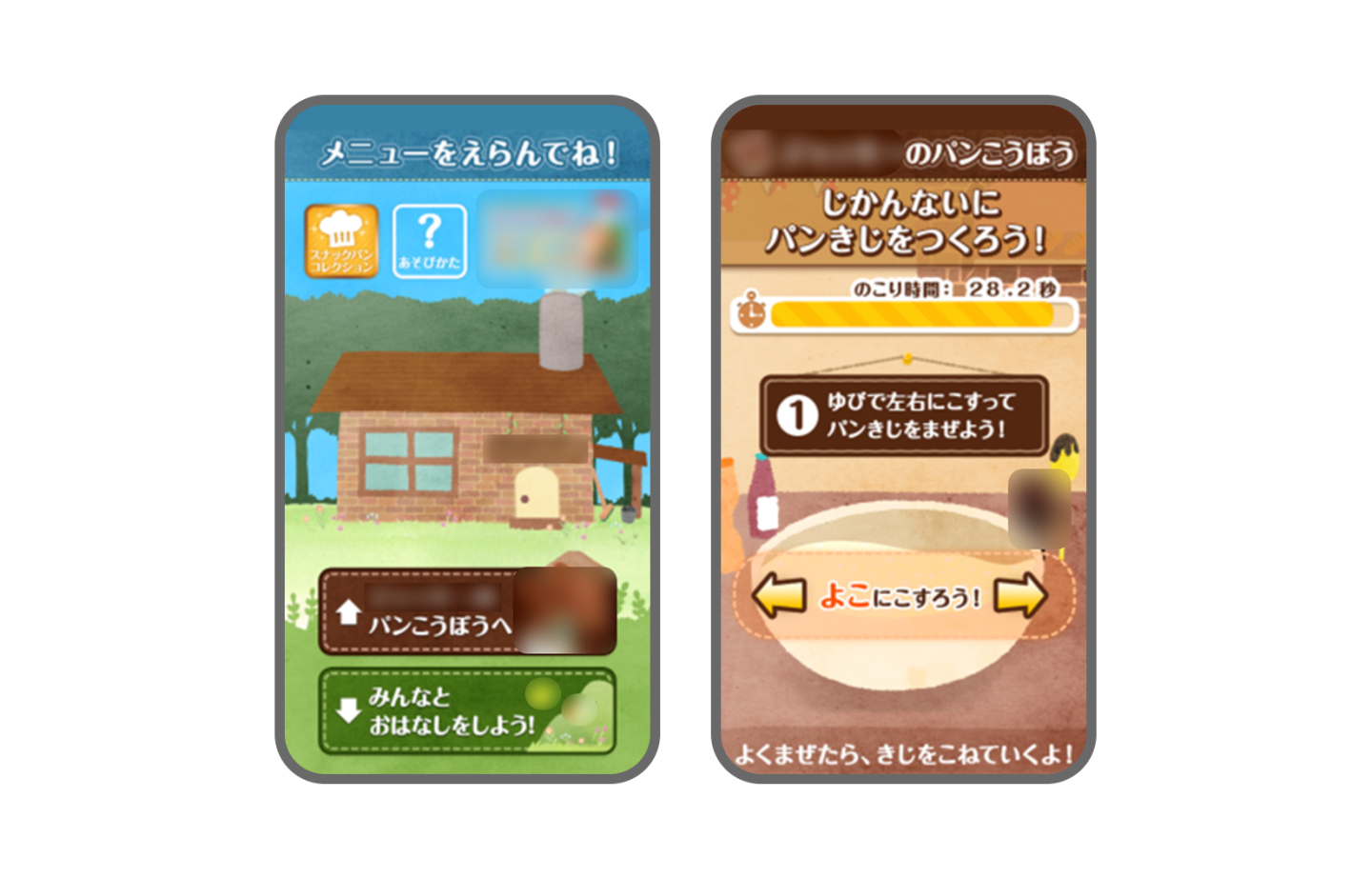 タップやスワイプの簡単な指先操作だけで遊べるパン作りゲームアプリです。 実際に発売されているパン商品がレシピになっており、希望のパンを選択し制限時間内に『材料を入れる→まぜる→こねる→発酵→焼く』の工程を進めてパンを完成させるゲームです。 AR機能も実装されており、実際の商品パッケージを読み取ると新しいレシピとして追加され、パン作りを体験できるという遊びも加わっており、お母さんとお子さんで遊ぶと楽しいゲームとなっています。